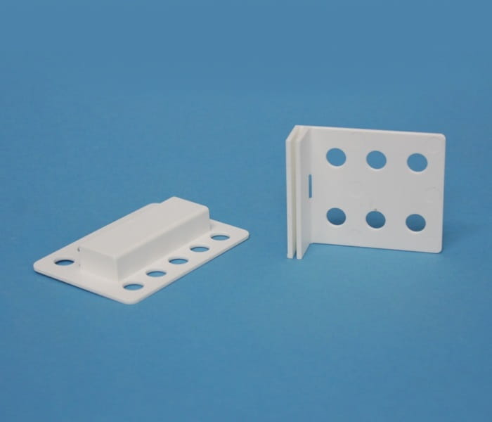 Elementy wspornika służą do łączenia półki ze ścianką boczną. Pierwszy element mocowany jest w ściance bocznej, drugi w półce.