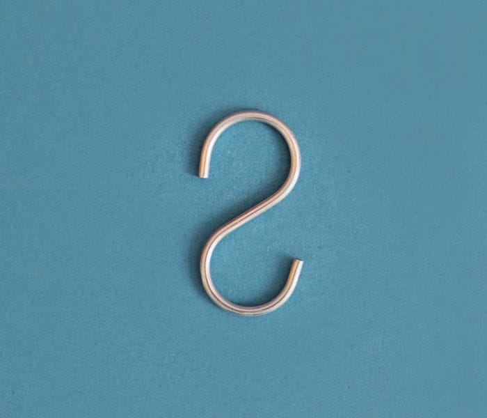 Metalowy haczyk typu S. Mały, jednocześnie wytrzymały.
