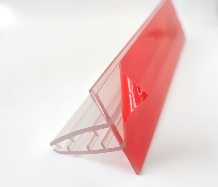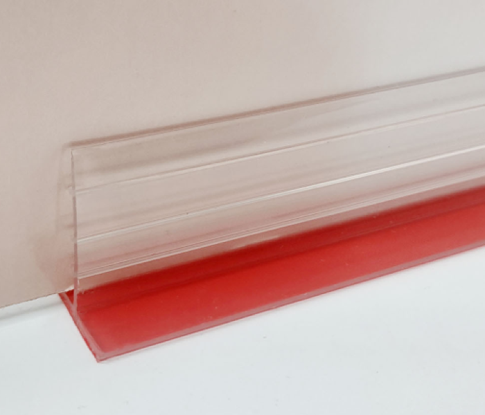 Duży uchwyt z bezbarwną taśmą żelową na podstawie do pionowego mocowania wydruków.