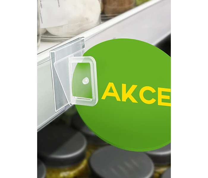 Mlecznobiały uchwyt do listwy cenowej na wobler lub reklamę.
