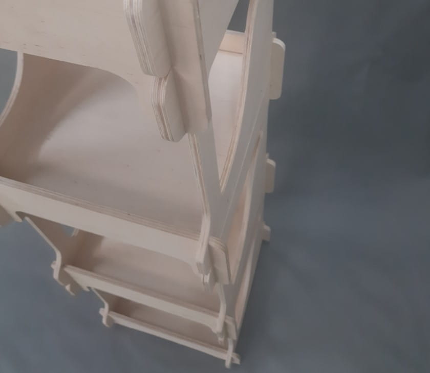 Składany regał wykonany ze sklejki gr. 10 mm, surowej brzozowej, klasa 2/3, sklejka wodoodporna.