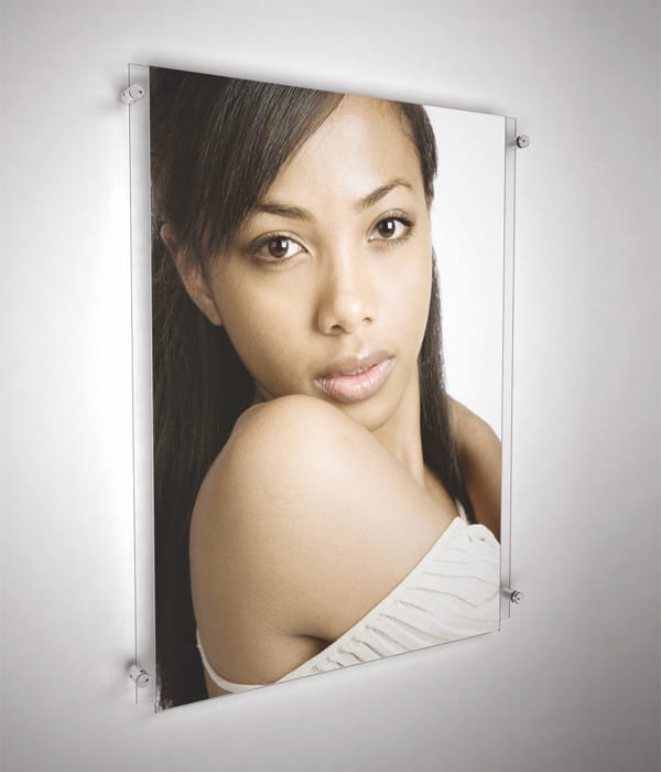 Naścienna antyrama na plakat A1 na dystansowych uchwytach bocznych.