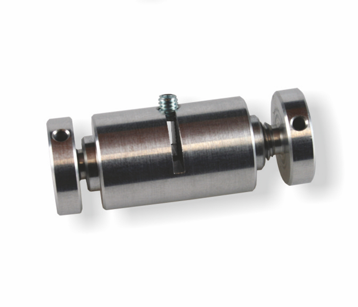 Dwustronny uchwyt do pionowego zawieszania tabliczek z otworem na systemie linkowym, aluminium polerowane.