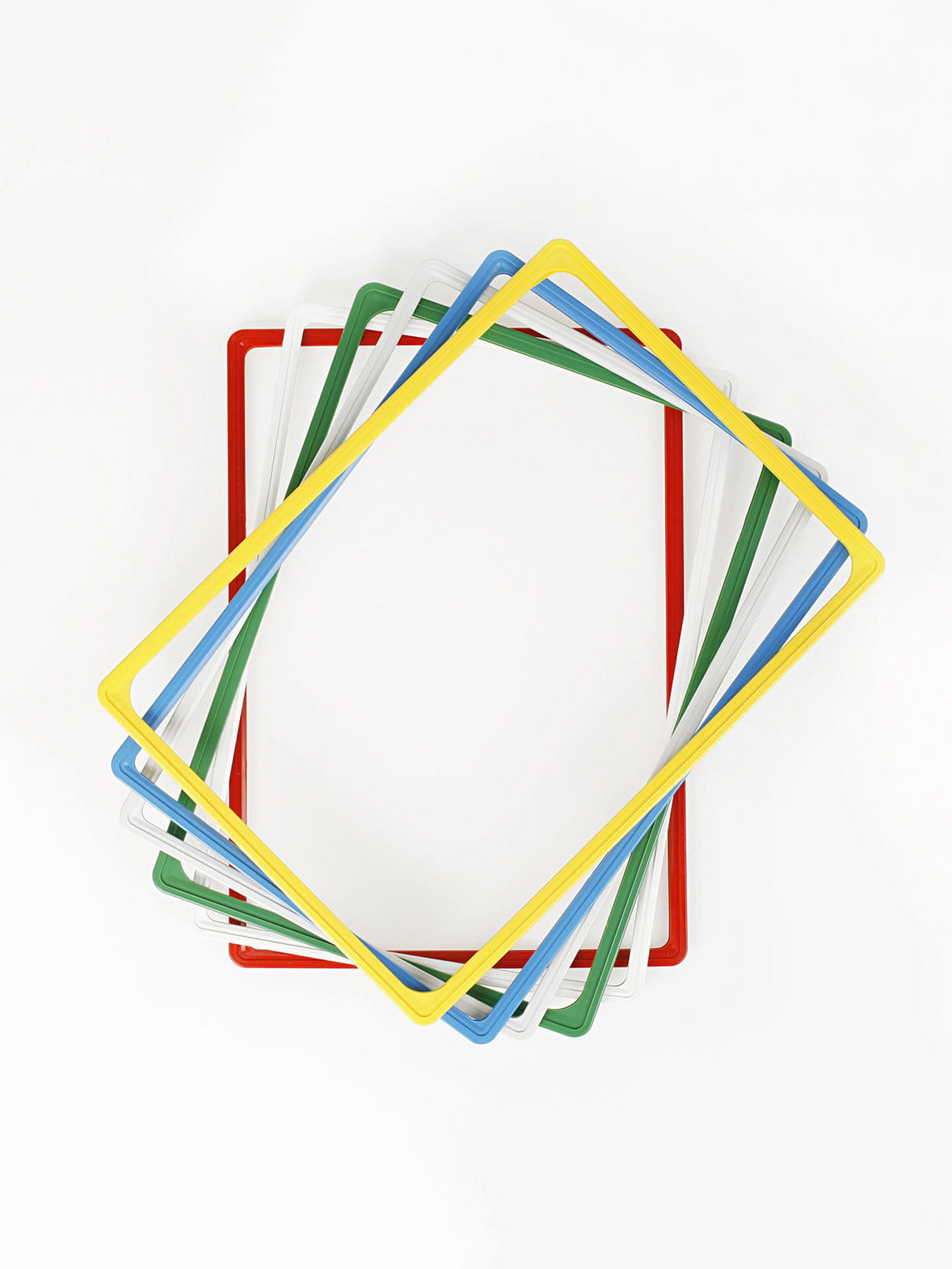 Ramka plastikowa ze szczeliną po krótszym boku, można w nią wsunąć plakat, kieszeń PVC lub tablicę kredową.