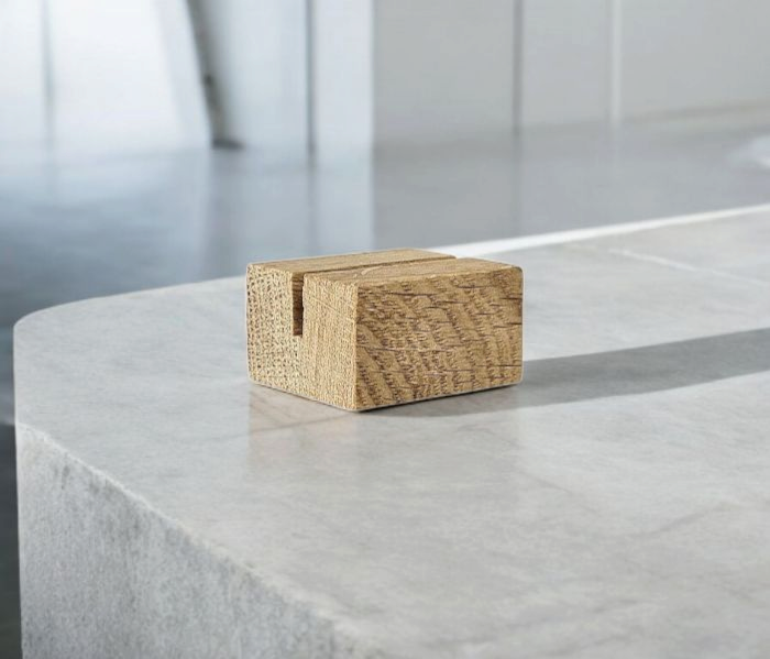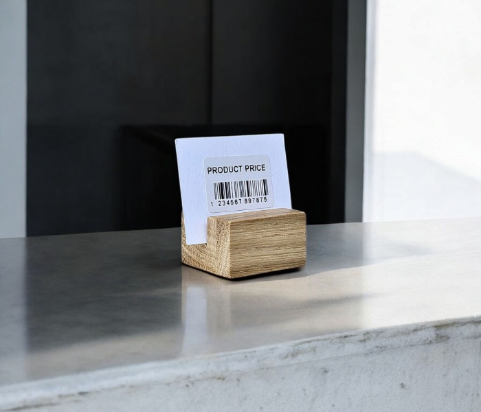 Mini stojak dębowy na wizytówkę, tabliczkę lub kieszeń pleksi.