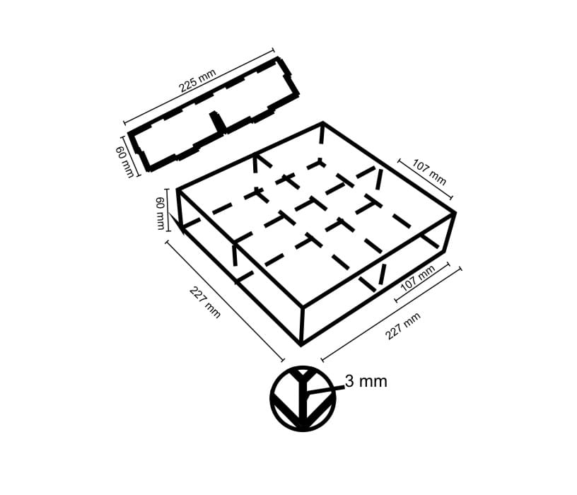 Wymiary: dł. 227 x szer. 227 x wys. 60 mm