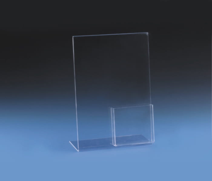 Stojak typu "L" A4 z kieszenią na ulotki A6.