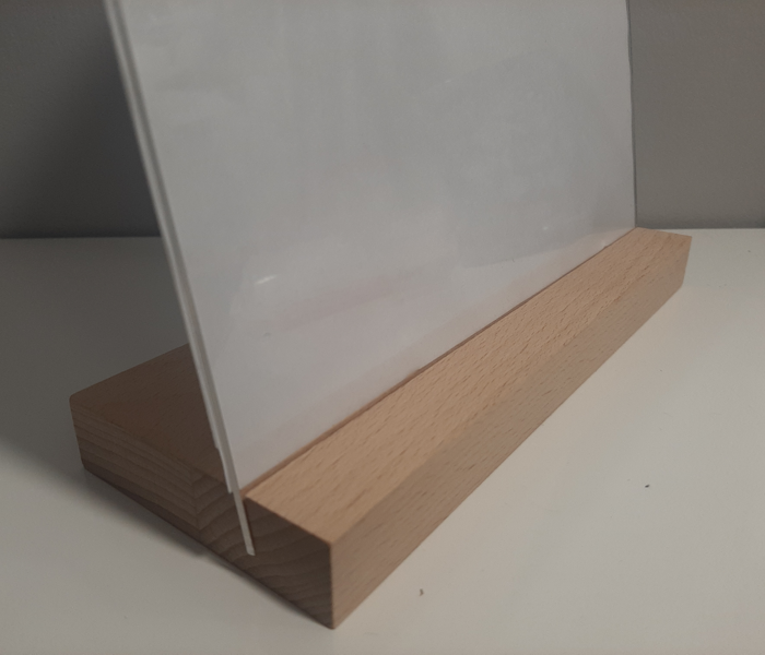 Stojaki A4 z drewnianą podstawą z grupy PREMIUM. Stojak do prezentacji jednostronnej.