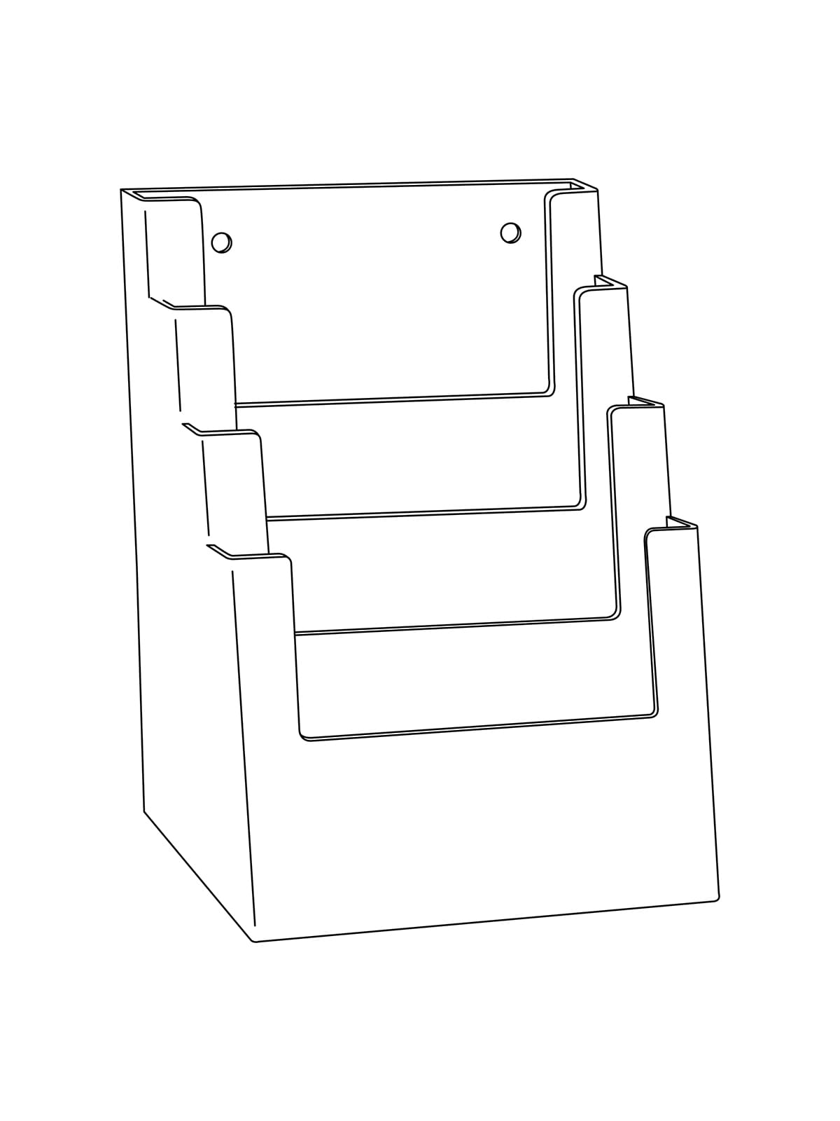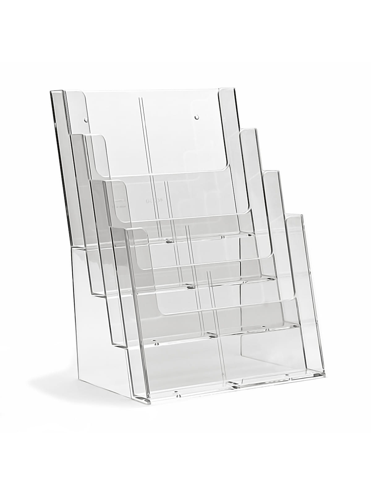 Stojak cztero-poziomowy na ulotki i katalogi w formacie A4 (210x297 mm).