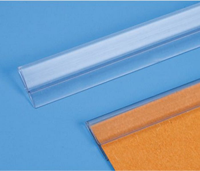 Plastikowa, bezbarwna listwa wsuwana bez taśmy, wysokość 15 mm. CENA PODANA JEST ZA 1 METR.